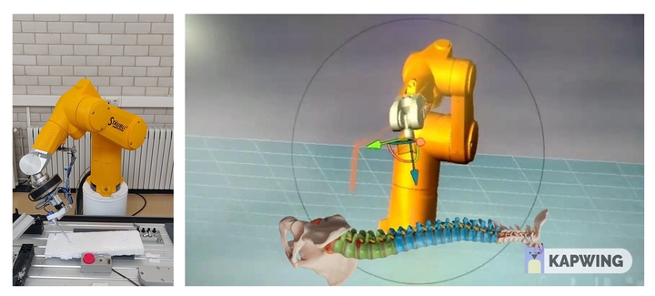 The goal of this project was to demonstrate pedicle screw placement for spine fusion. Steps - 1) Trajectory planning (Type of movement is Point to point), 2) Software simulation of robotic spine surgery (Stäubli Robotics Suite), and 3) Testing demo surgery using Tx60 Stabuli.