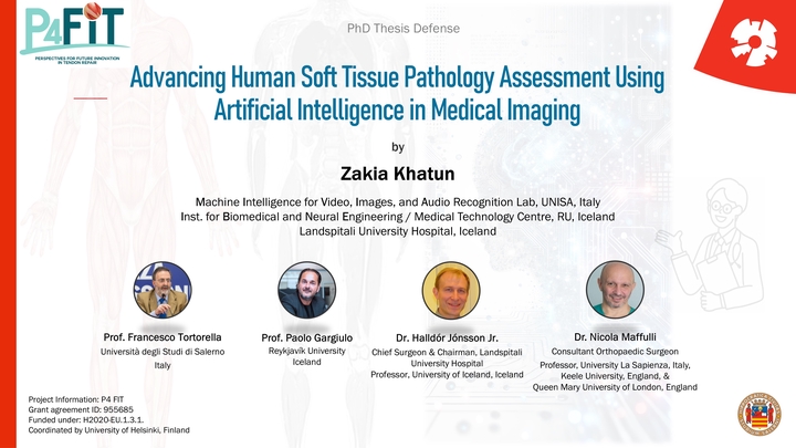 In particular, AI’s application in the assessment of tendon-related conditions, such as tendinopathy, presents a promising avenue for improving patient care. Tendinopathy can significantly impact a patient’s quality of life, and early detection is crucial to optimize treatment outcomes. This thesis focuses on the development of advanced AI-driven methods for analyzing human soft tissue pathologies, with a primary emphasis on tendon segmentation, pathology detection (classification), and tendon reflex response assessment. By automating the analysis of tendons and other human soft tissues, these methods aim to reduce human error and variability, thereby enabling more consistent and reliable clinical decisions. Ultimately, the goal is to support earlier, more accurate diagnoses and interventions, leading to better patient outcomes and more personalized treatment strategies.